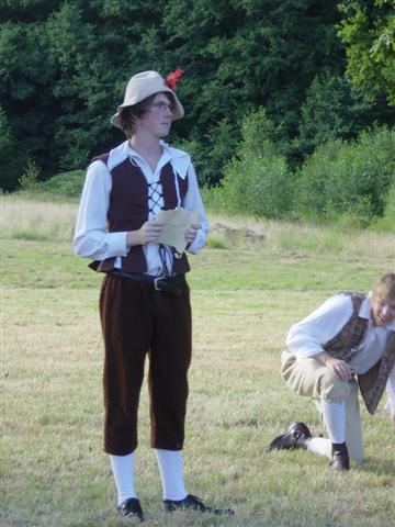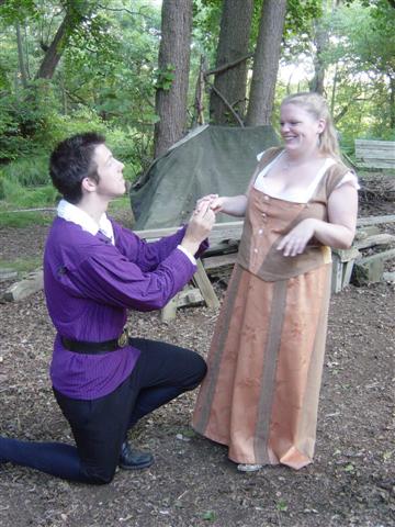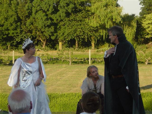 Hermia shares a joke with a kneeling Lysander Would you buy a used carriage from Theseus? Young lovers More young lovers